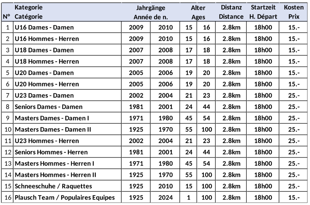 Samstag, 14. Februar 2026 ab 16h00 im Startbüro bei der Bahn bis 17h30.